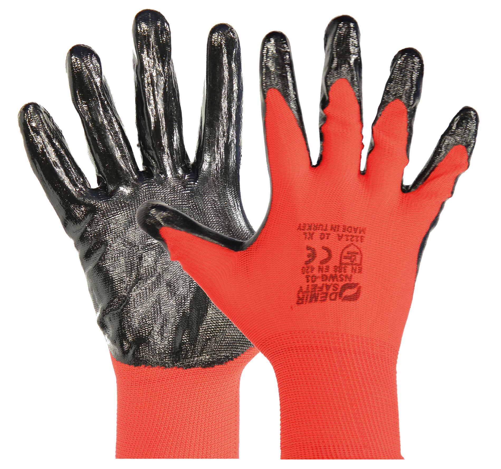 DEMİR SAFETY KIRMIZI SİYAH NİTRİL ELDİVEN D 008